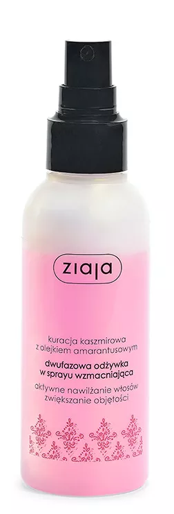 Ziaja Kaszmir to dwufazowa odżywka wzmacniająca przeznaczona do włosów normalnych, cienkich, delikatnych i suchych. Aktywnie odżywia i szybko kondycjonuje włosy, skutecznie nawilżając je i chroniąc przed wysuszaniem. Redukuje szorstkość, wygładza oraz dodaje blasku, jednocześnie ułatwiając rozczesywanie i modelowanie.