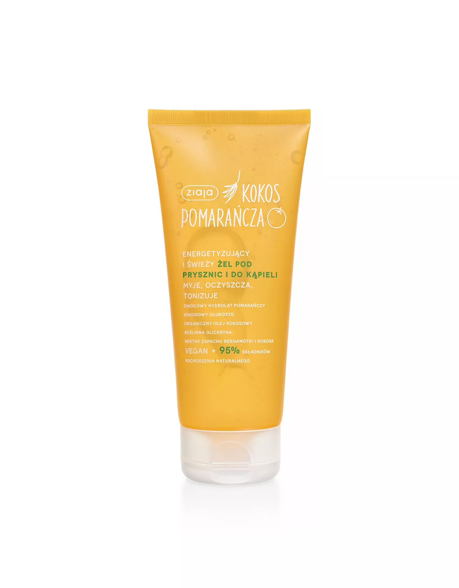 Odkryj energetyzujący i świeży żel pod prysznic i do kąpieli Ziaja Kokos-pomarańcza o pojemności 200 ml. Ta nowa propozycja do kompleksowej pielęgnacji twarzy, ciała i włosów skupia się na podstawowych, ale niezbędnych potrzebach skóry. Żel nawilża i odżywia, uwydatniając naturalne piękno skóry, jednocześnie zapewniając jej świeżość i witalność przez cały dzień.