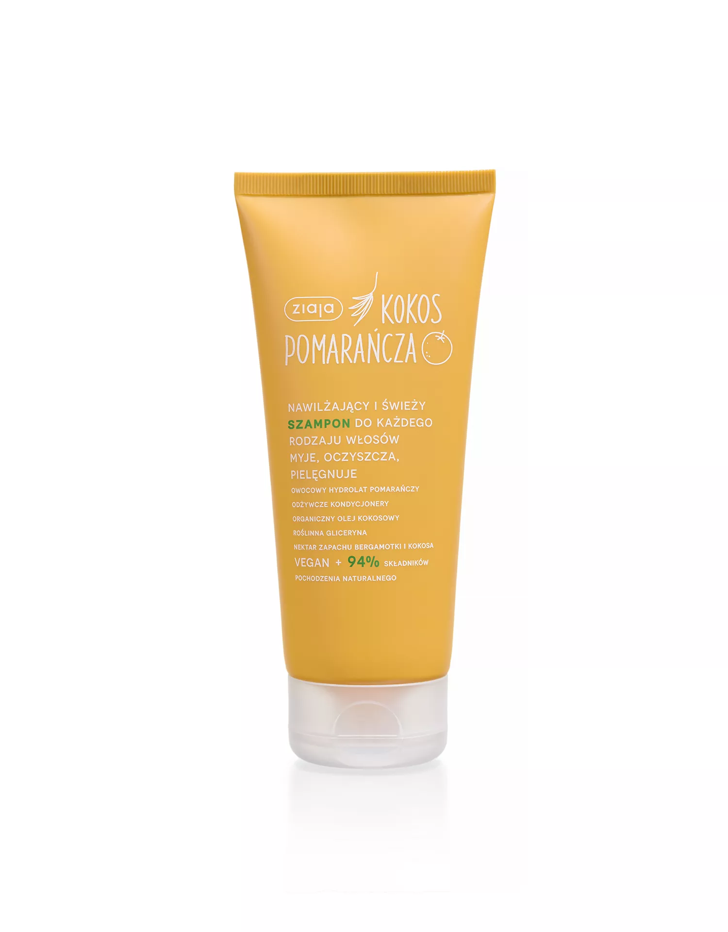Szampon Ziaja Kokos-pomarańcza jest częścią serii składającej się z 8 produktów, które bazują na roślinnych substancjach aktywnych. Wszystkie produkty tej serii oferują wciągające doświadczenie pielęgnacyjne, które zapobiega nudzie, dzięki harmonijnemu przenikaniu się substancji aktywnych z kokosa i pomarańczy.