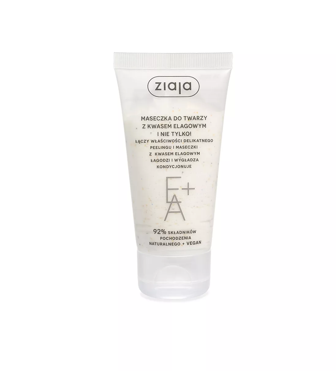 łączy właściwości delikatnego peelingu i maseczki z kwasem elagowym