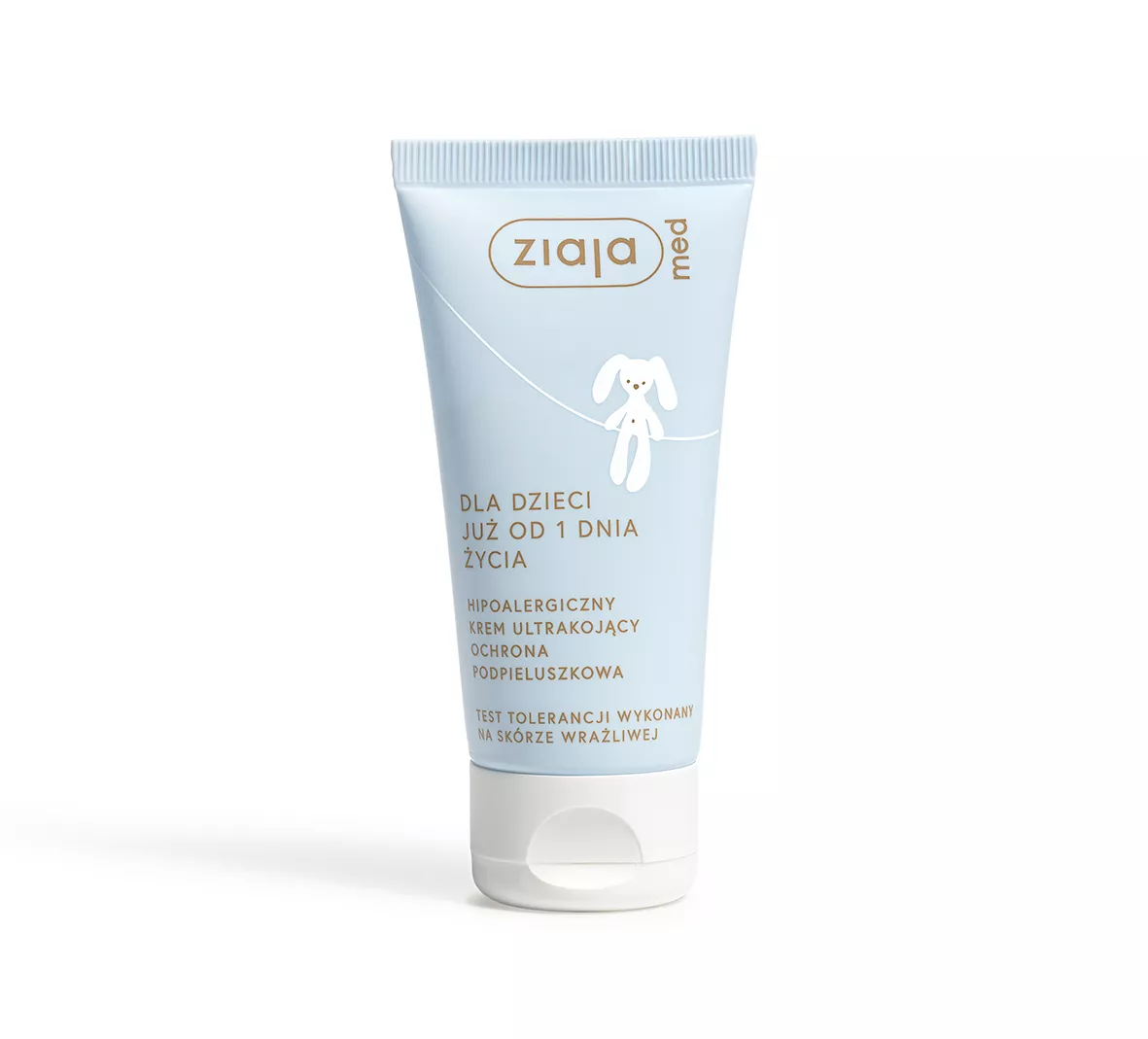 Ziaja Med dla dzieci to hipoalergiczny krem ultrakojący, stworzony specjalnie do pielęgnacji delikatnej skóry okolic podpieluszkowych. Formuła oparta na 99,5% składnikach pochodzenia naturalnego, zapewnia skuteczną ochronę i regenerację już od pierwszego dnia życia dziecka. Krem posiada odżywczą, kremową konsystencję, która jest łatwa w aplikacji i nie zawiera substancji zapachowych, mimo przyjemnego zapachu. Produkt został opracowany, by minimalizować ryzyko wystąpienia reakcji alergicznych, co czyni go idealnym wyborem dla wrażliwej skóry.