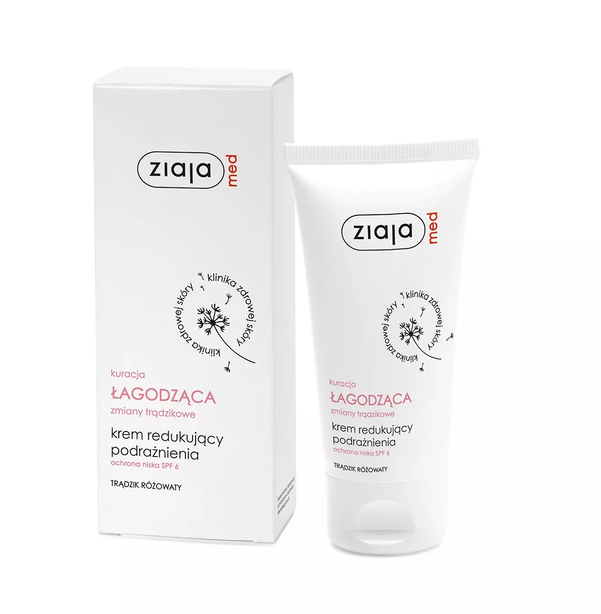 Ziaja Med Kuracja Łagodząca zmiany trądzikowe to krem redukujący podrażnienia z SPF 6, dedykowany osobom z problemami skórnymi, takimi jak zmiany grudkowo-kostkowe, rumień czy nadwrażliwość na czynniki zewnętrzne. Produkt ten pomaga przywrócić równowagę hydro-lipidową naskórka, wzmacnia funkcje barierowe skóry oraz łagodzi objawy takie jak pieczenie, zaczerwienienie i podrażnienie.