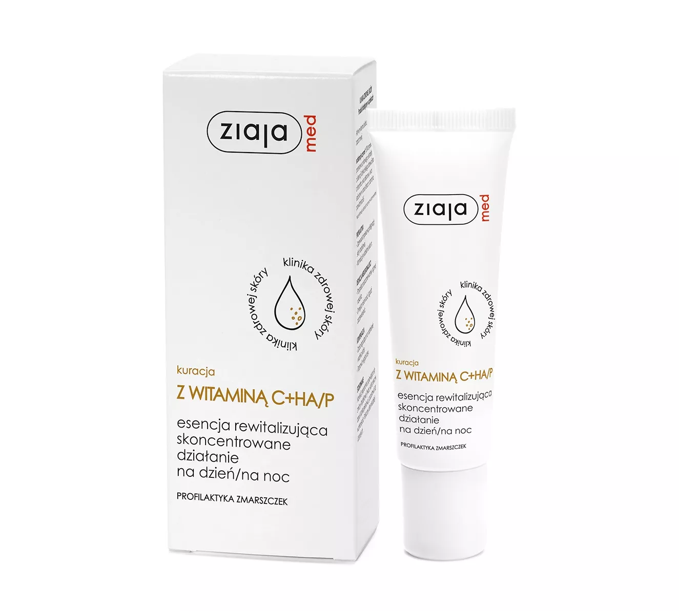 Ziaja Med Kuracja ochronna z witaminą C, HA/P to esencja rewitalizująca o skoncentrowanym działaniu, przeznaczona do stosowania zarówno na dzień, jak i na noc. Idealna dla tych, którzy chcą zapobiegać przedwczesnemu starzeniu się skóry. Formuła opiera się na stabilnej witaminie C w formie naturalnego glukozydu, co zapewnia stopniowe uwalnianie kwasu askorbinowego, wpływając na długotrwałe działanie przeciwstarzeniowe. W połączeniu z kwasem hialuronowym i hydroxyproliną wzmacnia i odnawia włókna kolagenu, poprawiając kondycję zwiotczałej skóry oraz utrzymując jej zdrowy koloryt.