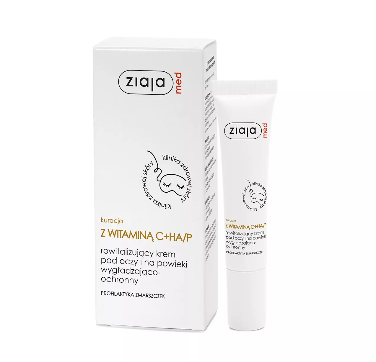 Kuracja ochronna Ziaja Med z witaminą C, HA/P to rewitalizujący krem pod oczy i na powieki, który przeciwdziała przedwczesnemu starzeniu się skóry. Dzięki stabilnej formie witaminy C w naturalnym glukozydzie, produkt zapewnia długotrwałe działanie poprzez stopniowe uwalnianie kwasu askorbinowego. W połączeniu z kwasem hialuronowym i hydroxyproliną, krem intensywnie wzmacnia włókna kolagenowe, spowalnia procesy starzeniowe i poprawia kondycję skóry, pomagając zachować jej zdrowy koloryt.