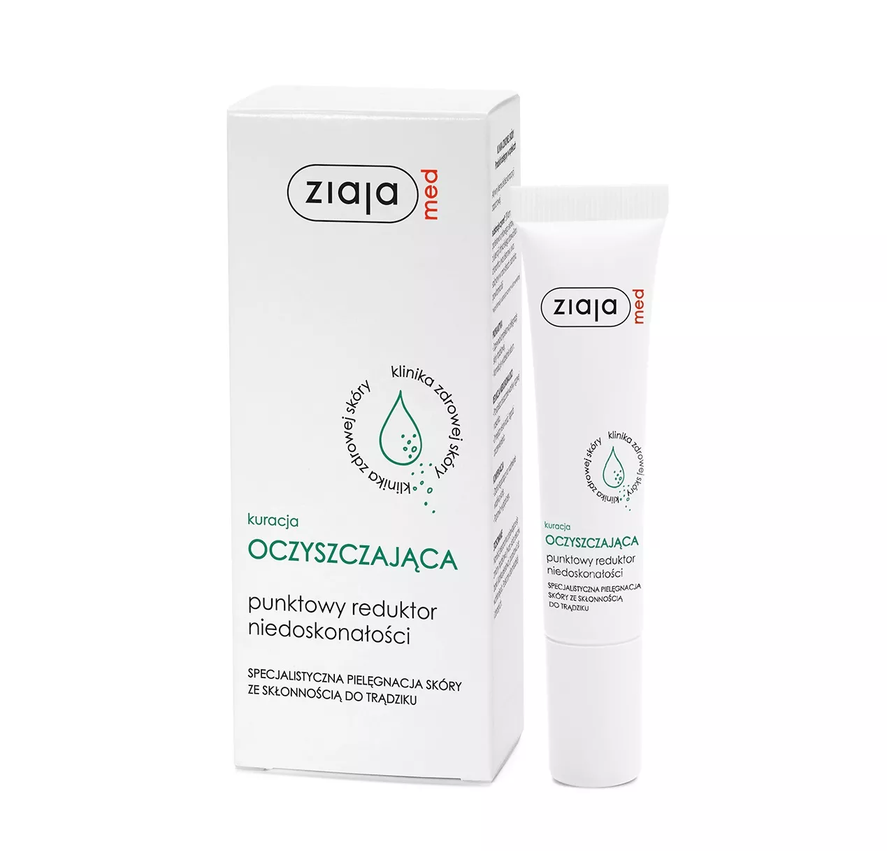 Kuracja oczyszczająca Ziaja Med to punktowy reduktor niedoskonałości zaprojektowany specjalnie dla skóry tłustej, mieszanej i trądzikowej ze skłonnością do łojotoku. Produkt skutecznie pomaga rozwiązać problemy związane z nadmierną aktywnością gruczołów łojowych, rozszerzonymi porami oraz skłonnością do świecenia się skóry. Wspomaga redukcję namnażania bakterii odpowiedzialnych za powstawanie stanów zapalnych.