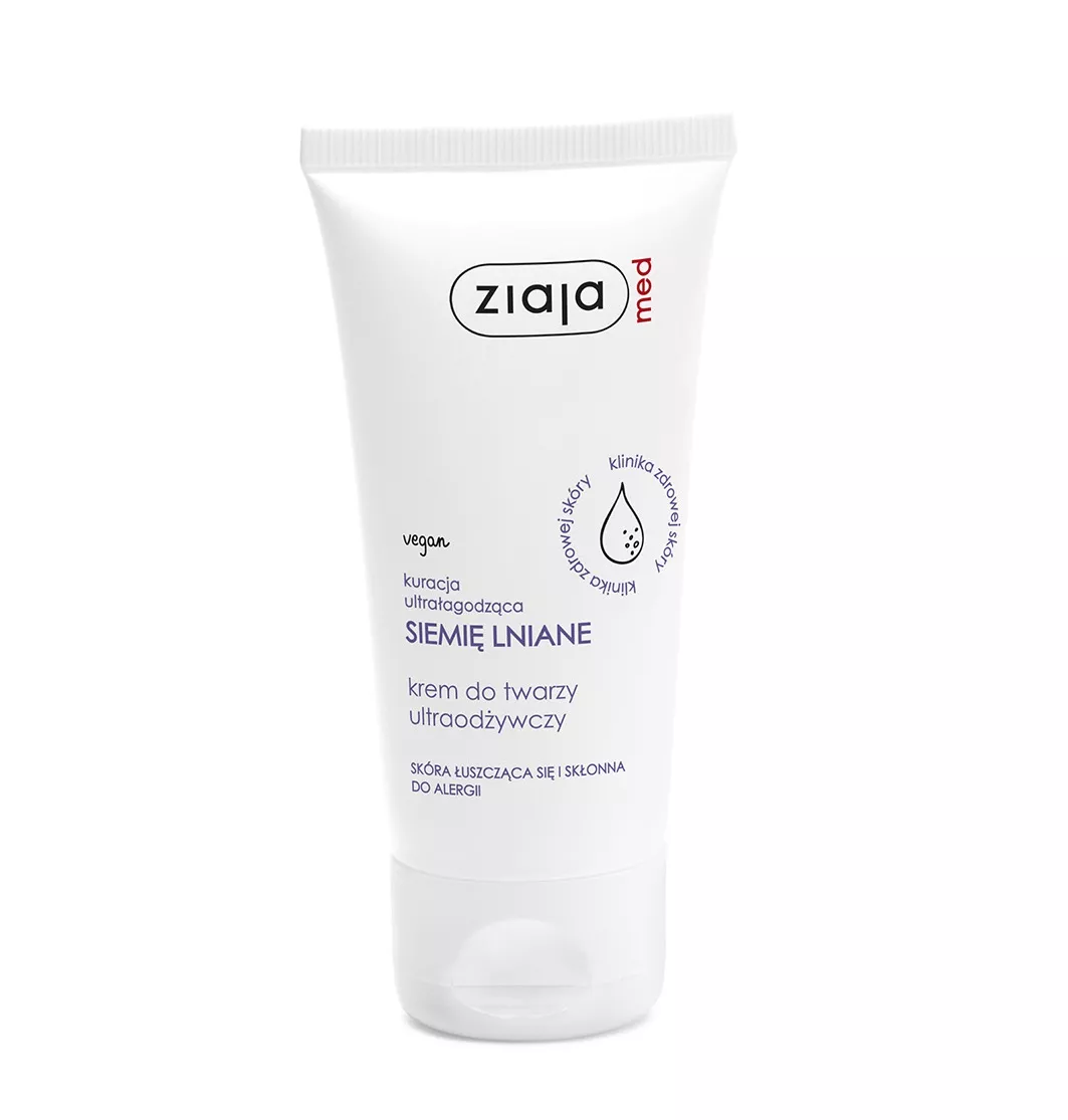 Ziaja Med Kuracja siemieniem lnianym to ultraodżywczy krem do twarzy, który zapewnia intensywną pielęgnację skóry łuszczącej się i skłonnej do alergii. Produkt jest częścią serii dermokosmetyków, opartych na certyfikowanym hydrolizacie z siemienia lnianego, które są polecane po zabiegach medycyny estetycznej oraz dla osób z problemami skóry wrażliwej. Krem ten, stworzony z 96% składników pochodzenia naturalnego, oferuje esencjonalną konsystencję, idealną zarówno na dzień, jak i na noc.