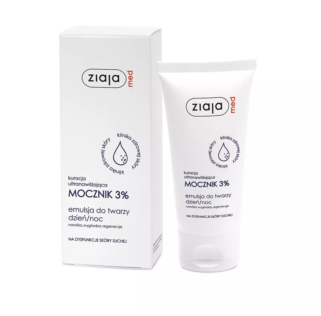 Ziaja Med Kuracja Ultranawilżająca Mocznik, 3% emulsja do twarzy dzień/noc to zaawansowany preparat opracowany z myślą o pielęgnacji skóry suchej. Produkt ten wykorzystuje substancje o natychmiastowej aktywności nawadniającej, które pomagają ograniczyć proces końcowej utraty wody, zapewniając skórze nawilżenie i gładkość. Jest to doskonałe rozwiązanie również dla diabetyków, którzy zmagają się z dysfunkcjami skóry.