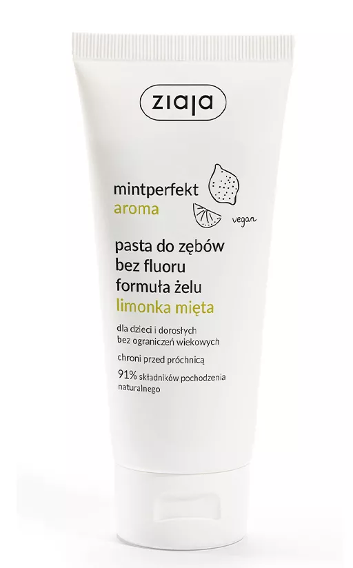 Mintperfekt Aroma to nowoczesna pasta do zębów w żelu, która zapewnia kompletne rozwiązanie dla higieny jamy ustnej, bazując na mineralnych składnikach takich jak krzemionki, węglan wapnia, biała glinka i perlit. Pasta delikatnie oczyszcza zęby, nie powodując ścierania szkliwa, a jej ziołowy aromat zawiera naturalne olejki z mięty, limonki, werbeny, eukaliptusa i zielonej herbaty. Produkt jest bezglutenowy i odpowiedni dla wegan.