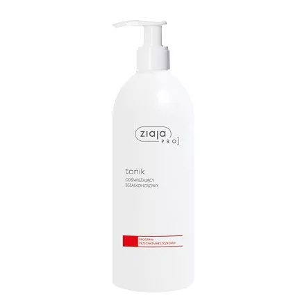 Ziaja Pro, tonik odświeżający to doskonały wybór dla osób pragnących zadbać o skórę dojrzałą z widocznymi zmarszczkami. Ten zaawansowany kosmetyk został stworzony z myślą o potrzebach skóry suchej, matowej, szorstkiej i mało elastycznej. Dzięki unikalnej formule, tonik stymuluje procesy zachodzące w skórze, które spowalniają wraz z wiekiem, zapewniając dotlenienie komórek, wygładzanie zmarszczek, rozjaśnienie przebarwień oraz poprawę kolorytu skóry. Regularne stosowanie sprawia, że zmarszczki są mniej widoczne, a skóra staje się zregenerowana, odżywiona i pełna młodzieńczej jędrności.