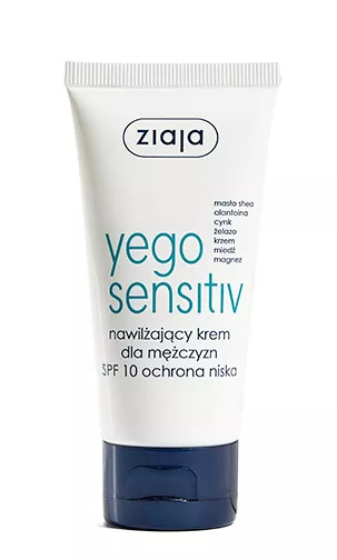 Ziaja Yego Sensitiv to nawilżający krem do twarzy dla mężczyzn z filtrem SPF10, stworzony na bazie funkcjonalnej receptury. Zawiera składniki nawilżające, łagodzące i ochronne, w tym płynne masło shea — nowatorski emolient o wysokiej skuteczności i natychmiastowej aktywności pielęgnacyjnej.